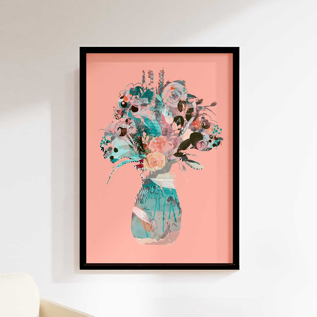 Afiches tamaño doble carta de ilustraciones florales en pintura acrílica, envueltas digitalmente en floreros, impresos en Giclée. Venta por encargo en mi tienda. Cantidad limitada.